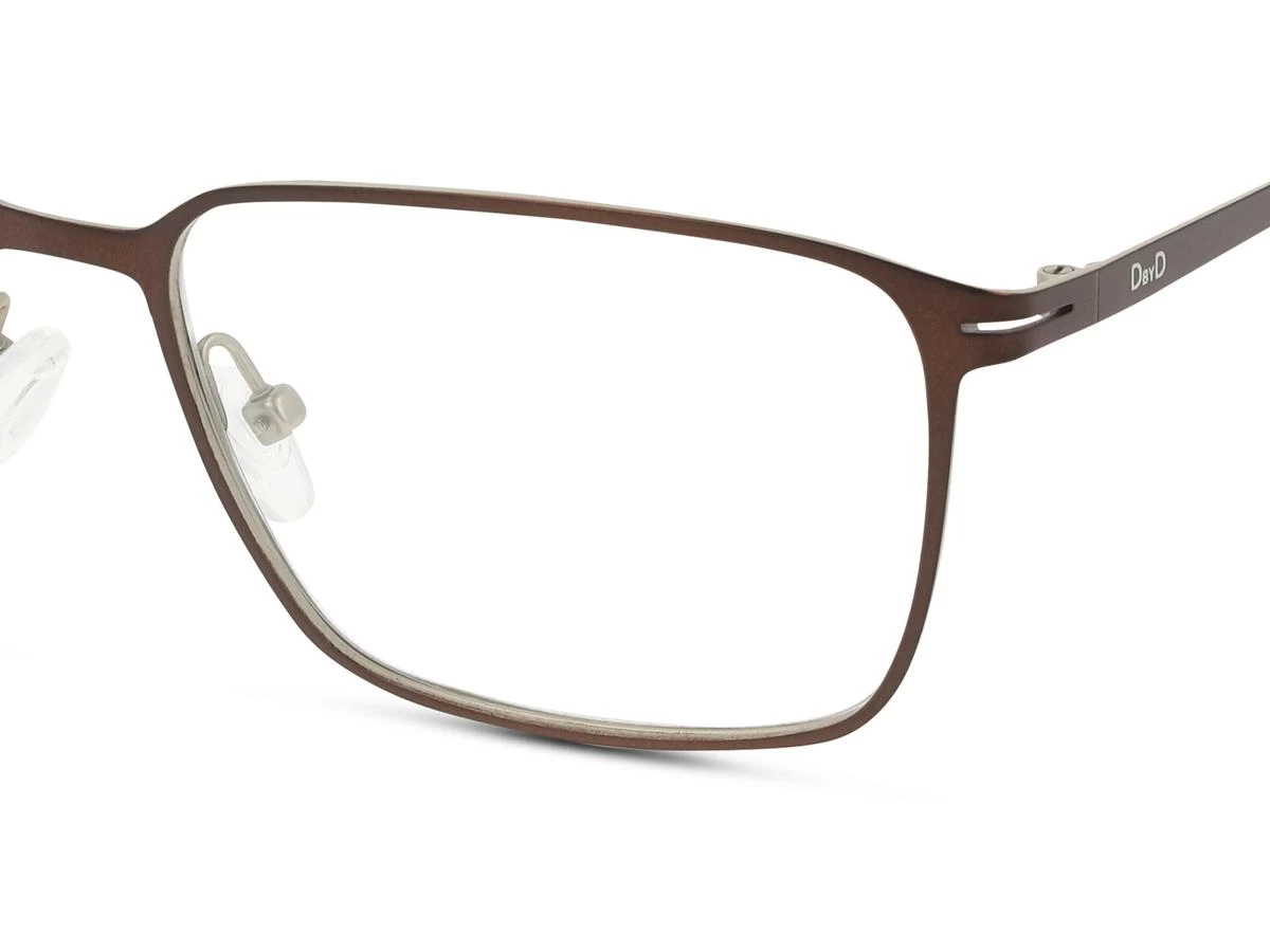 DBOM9027 is a frame from DbyD, available in a large size. Made of titanium, this glasses frame is lightweight, durable, resistant to corrosion and hypoallergenic. The full rim design provides even coverage around the lens and can accommodate stronger prescriptions.