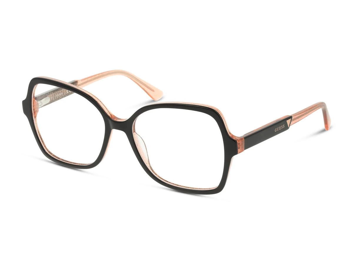 GU2924 is a frame from Guess, available in a large size. Made of high quality plastic, this glasses frame is lightweight and a great value. The full rim design provides even coverage around the lens and can accommodate stronger prescriptions.
