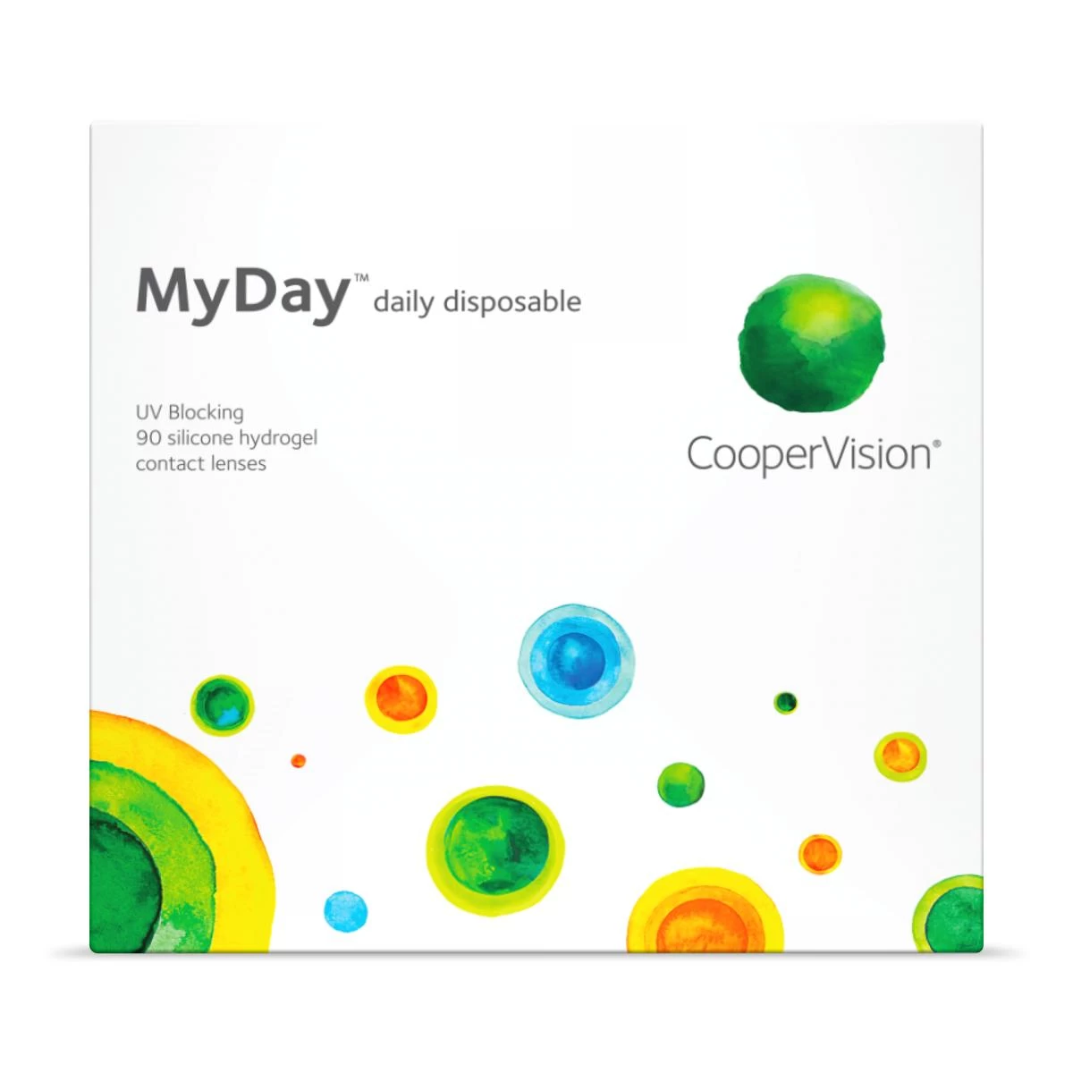 MyDay 54% water, daily disposable Smart Silicone Chemistry contact lens. There are 90 lenses per Daily Disposable package.